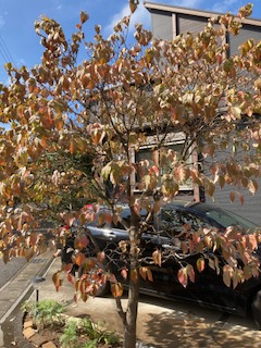 ハナミズキが紅葉する前に枯れてしまい、葉の多くが落葉しています。9月いっぱい暑さと水不足に加えて、剪定が弱かったために、多くの葉に栄養が届かなかったからでしょうか。紅葉を楽しみにしていたのですが、残念です。10月に入ってもまだ花が咲きそうにない金木犀。暑く長い夏は金木犀にも影響しています。その金木犀の花が終わる頃に、ハナミズキ、金木犀、梅の剪定をまとめて市のシニア人材センターにお願いする予定です。