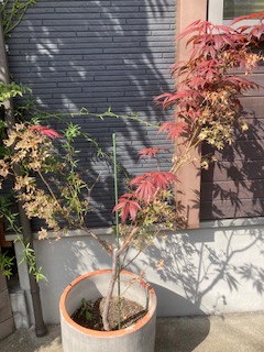 紅葉することを忘れてしまったかのようなハナミズキですが、もみじは枯れてしまった葉に変わって、ふた回りほど大きくなって、新しい葉っぱが生えてきてくれたのは、望外の喜びです。夏の暑さに葉が枯れた時にはどうなることかと思いましたが、見事に復活しています。10月のMVPはもみじで決まりでしょう。
